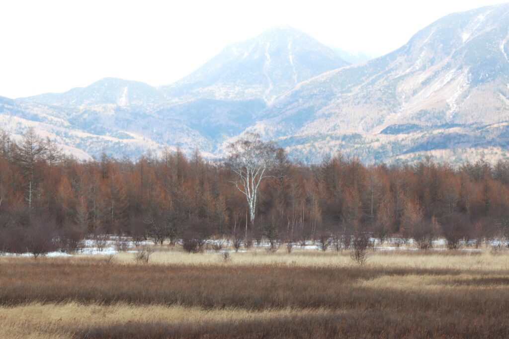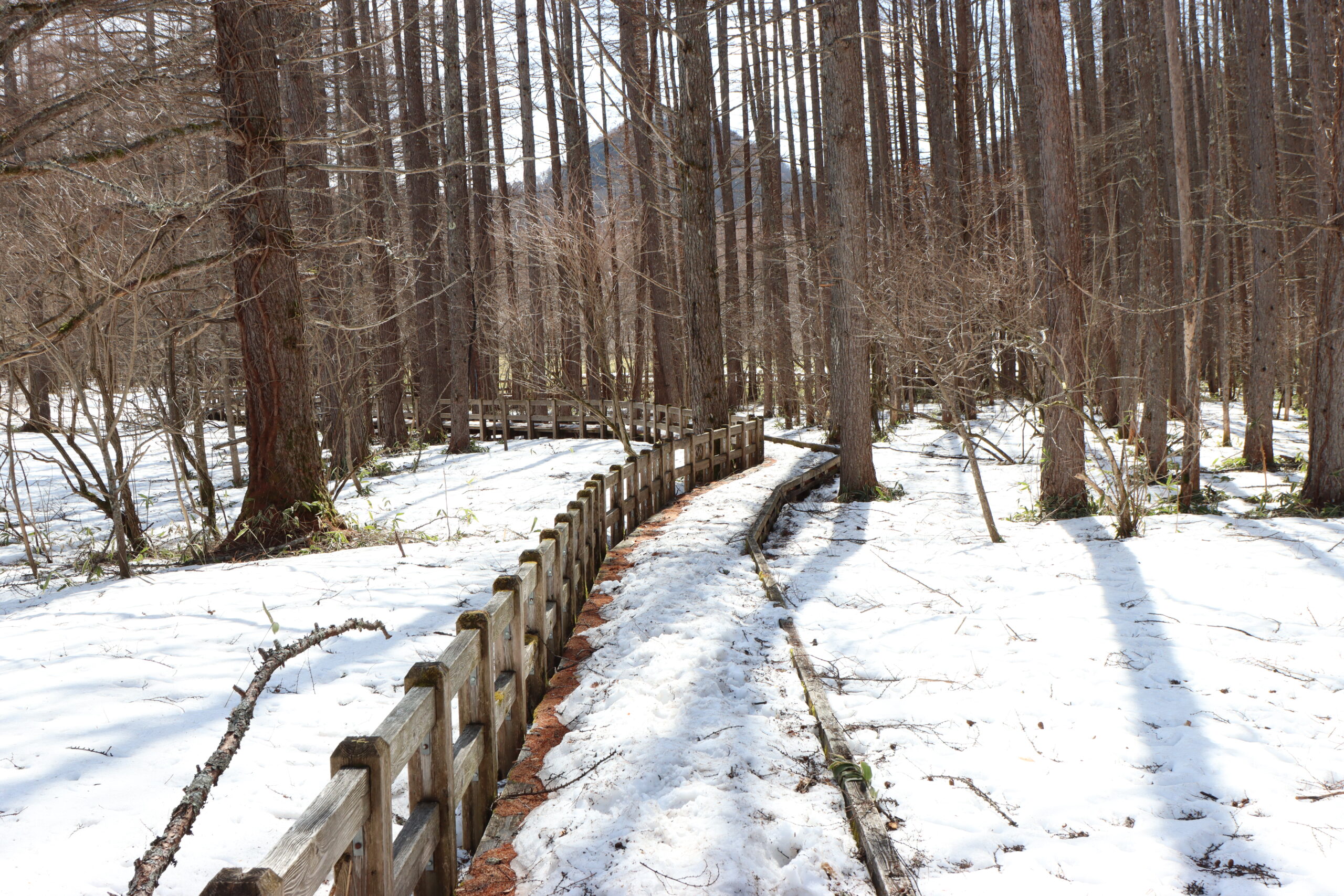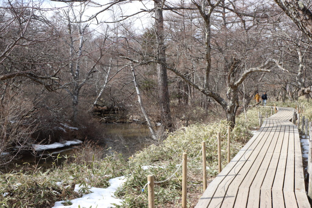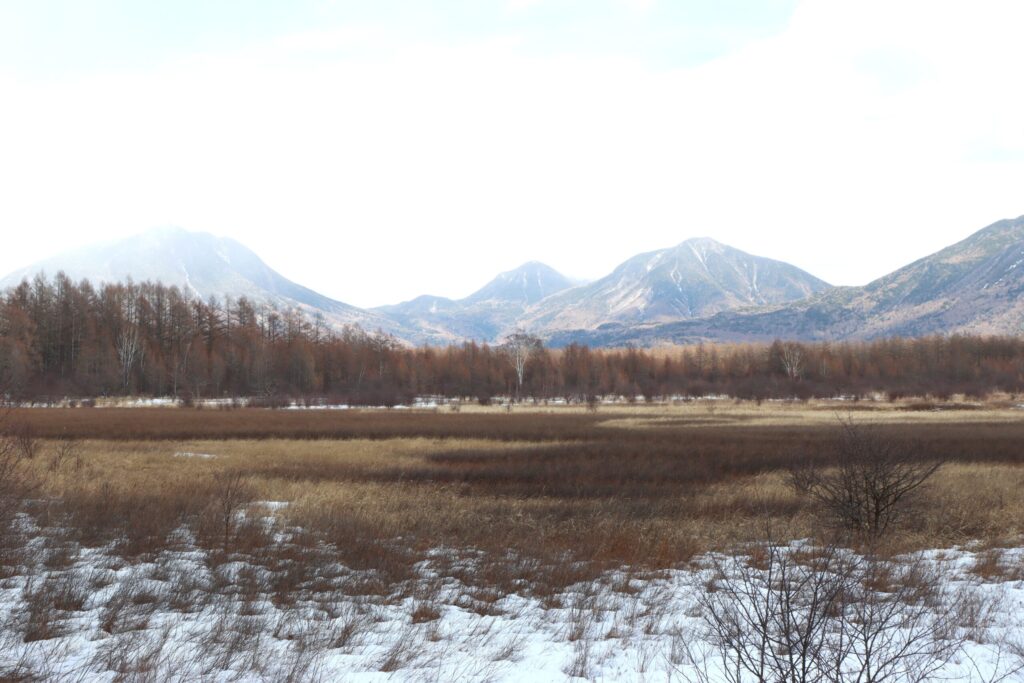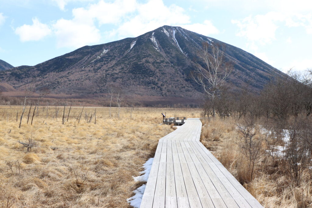 戦場ヶ原の木道入り口から湿原中心部の展望台までのエリアはほぼ雪がないので安心して歩けます。