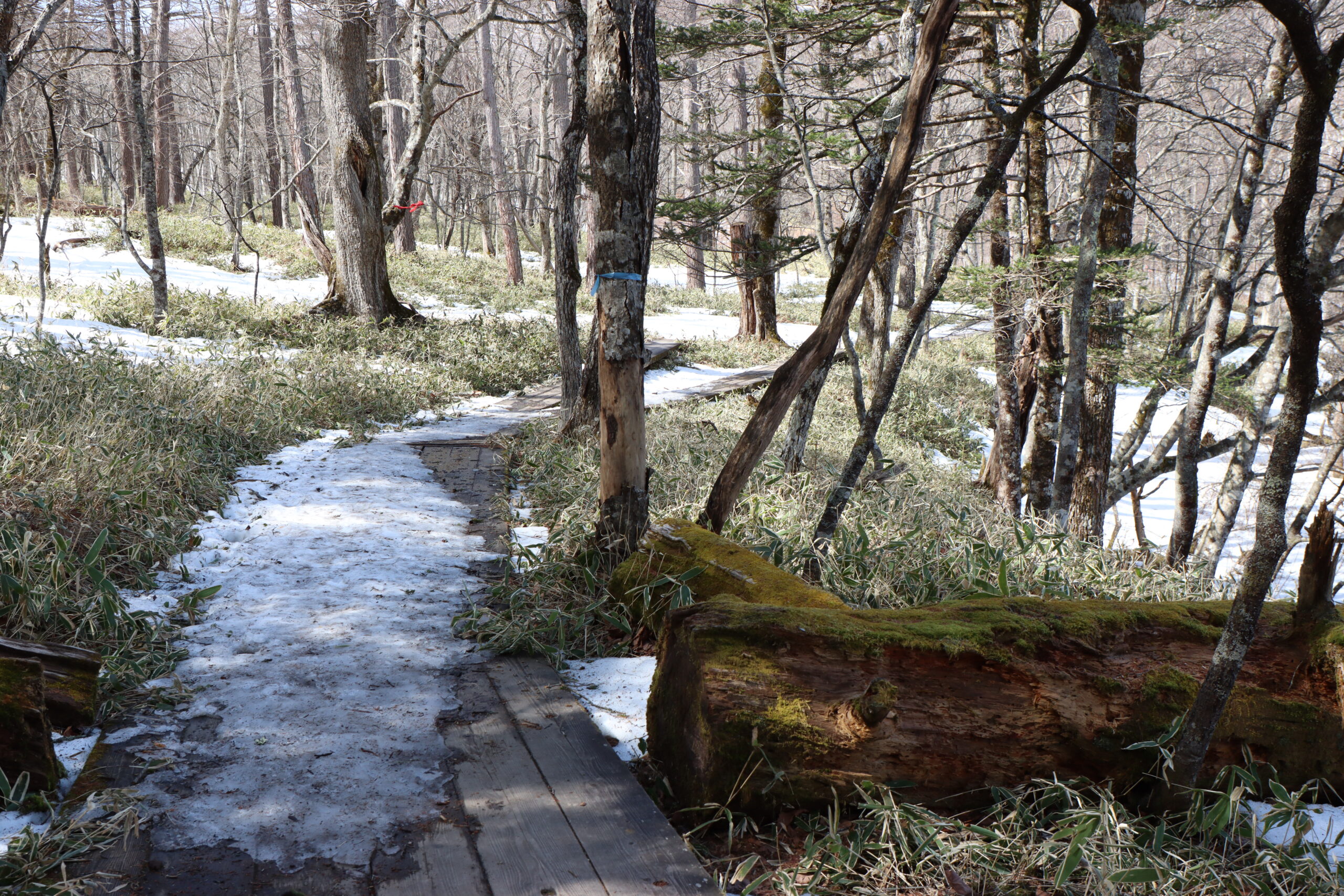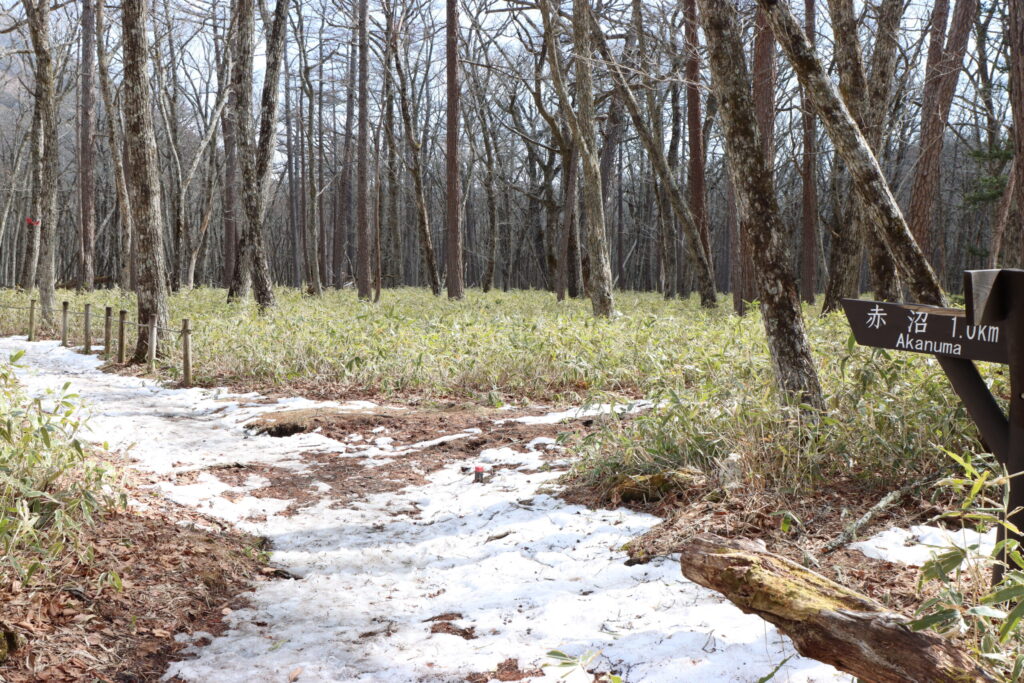 そして、小田代原から赤沼に向かう小田代歩道内も雪とぬかるみがミックスな感じです。