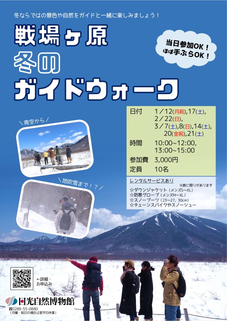 日光自然博物館では今週末から3週連続で今回歩いた戦場ヶ原をガイドと一緒に歩くツアー「戦場ヶ原冬のガイドウォーク」を開催致します。空きがあれば当日の参加も可能です。その他にも各種イベントを開催しています。詳しくはこちらをご覧ください。