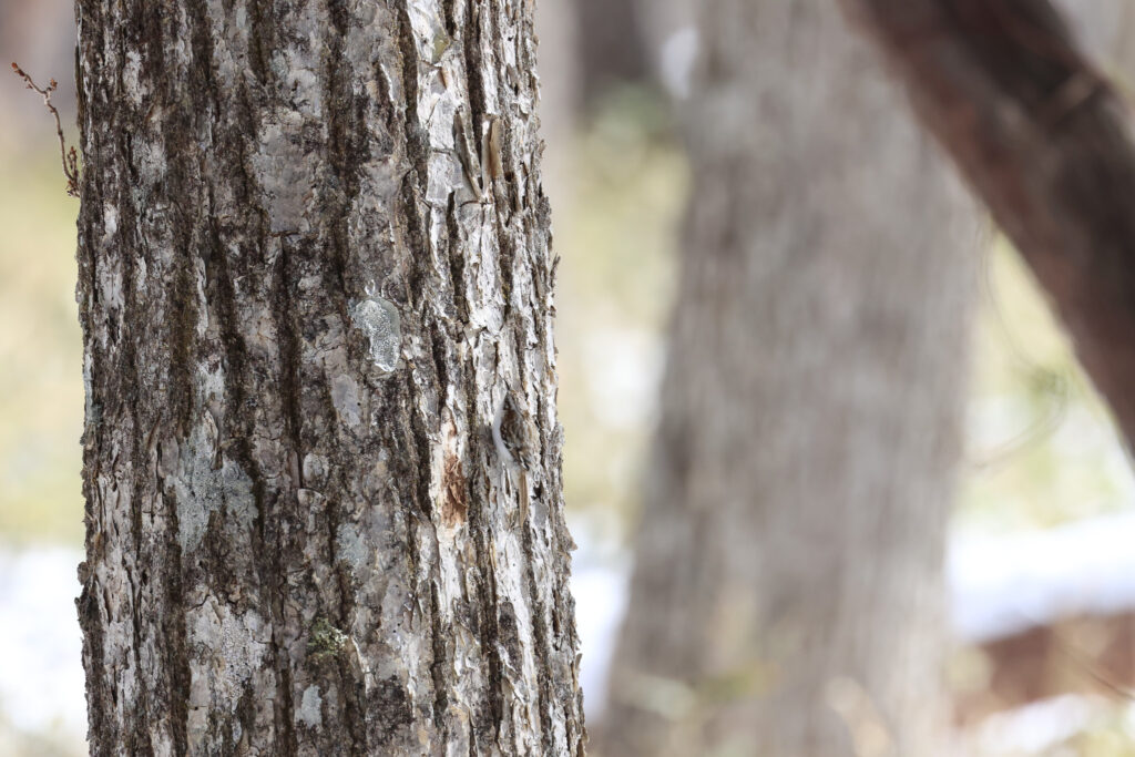 模様が樹皮にそっくりな鳥。どこかに潜んでいます。見つけられますか?