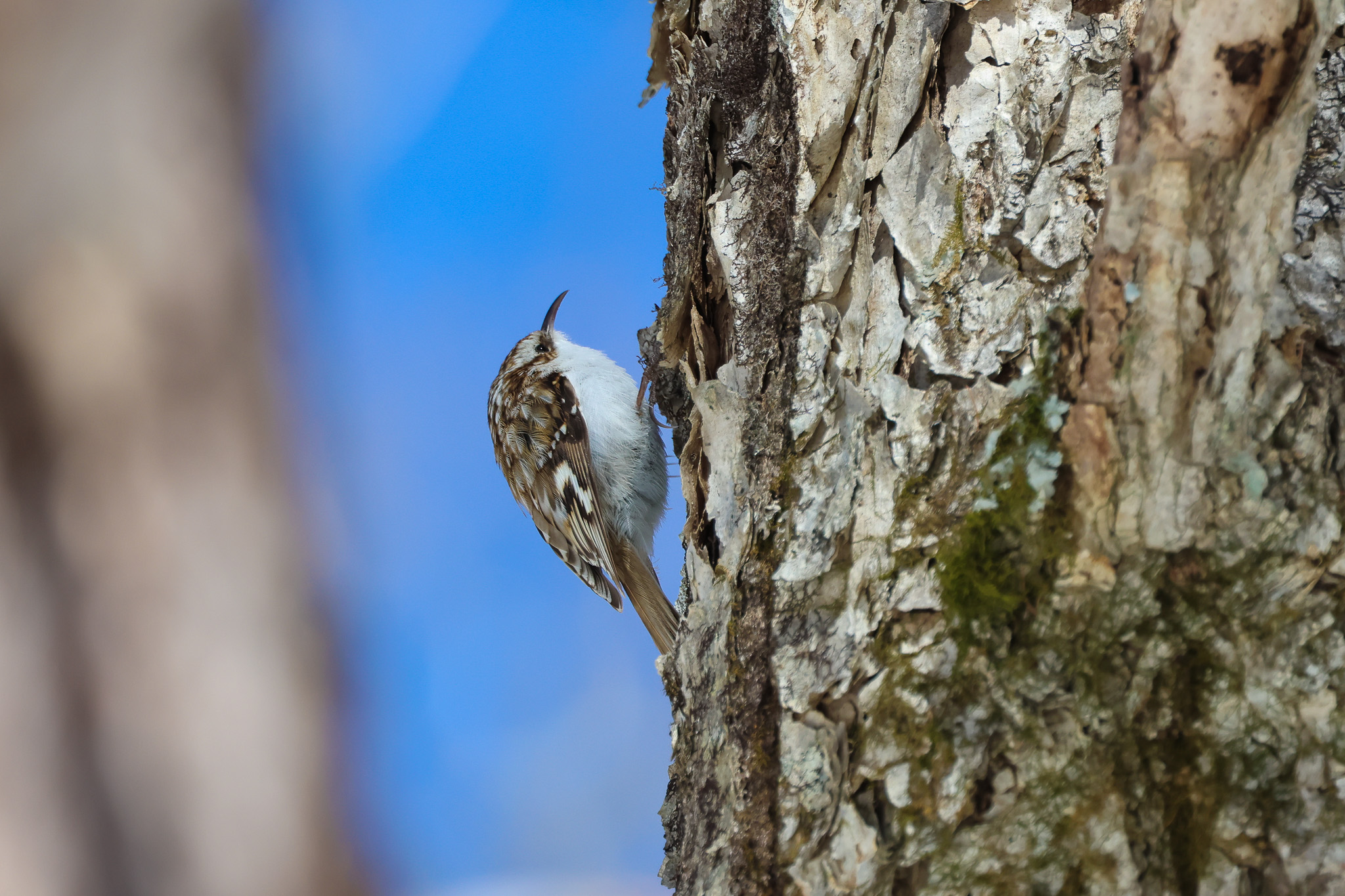 すぐそばの木の根元辺りにいたのに、エサを探しながらあっという間に上まで登っていきました!