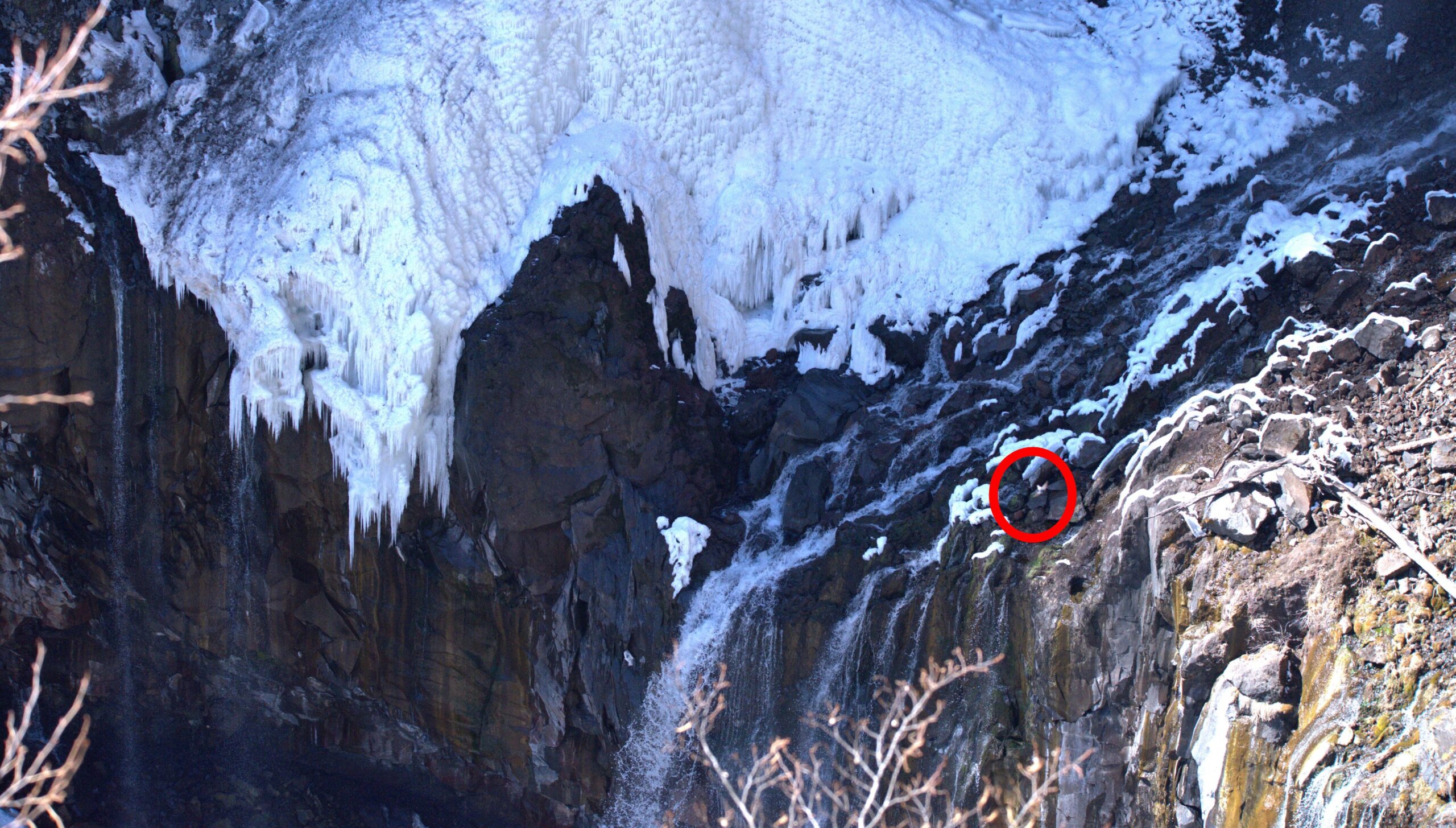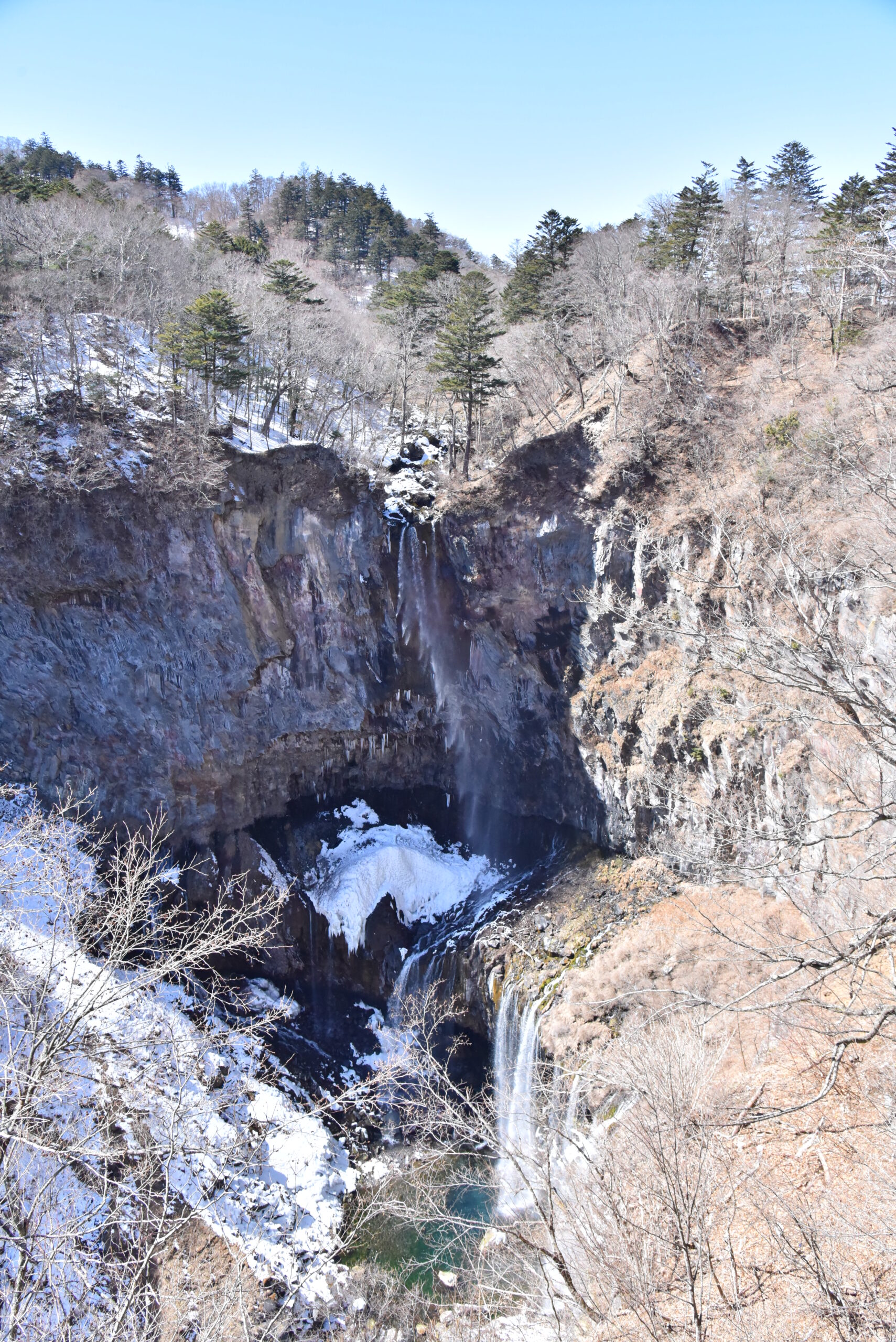 例年冬は水量が減る華厳滝ですが、今年は特に少なく主瀑が風にあおられている様子が見られます。