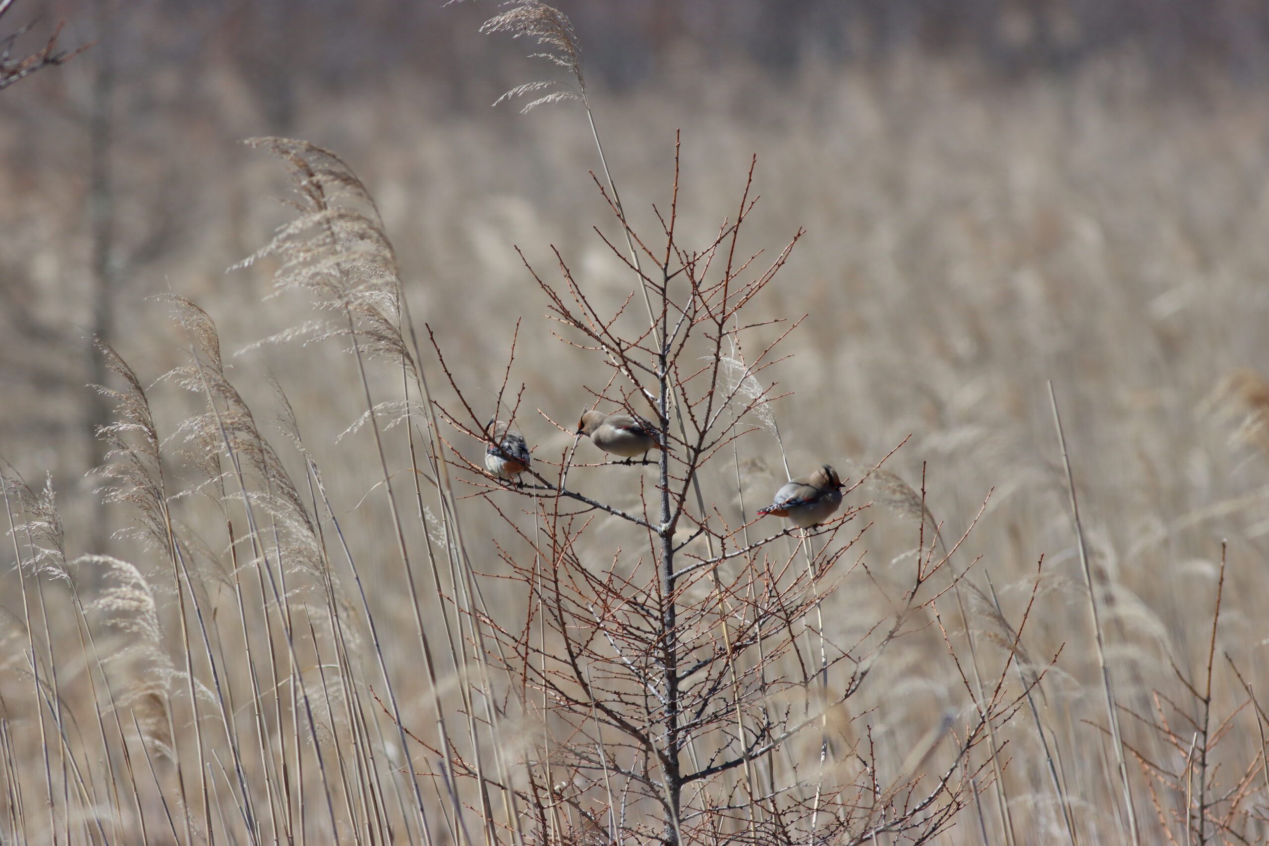 声のする方を見てみるとヒレンジャクの群れが来ていました。