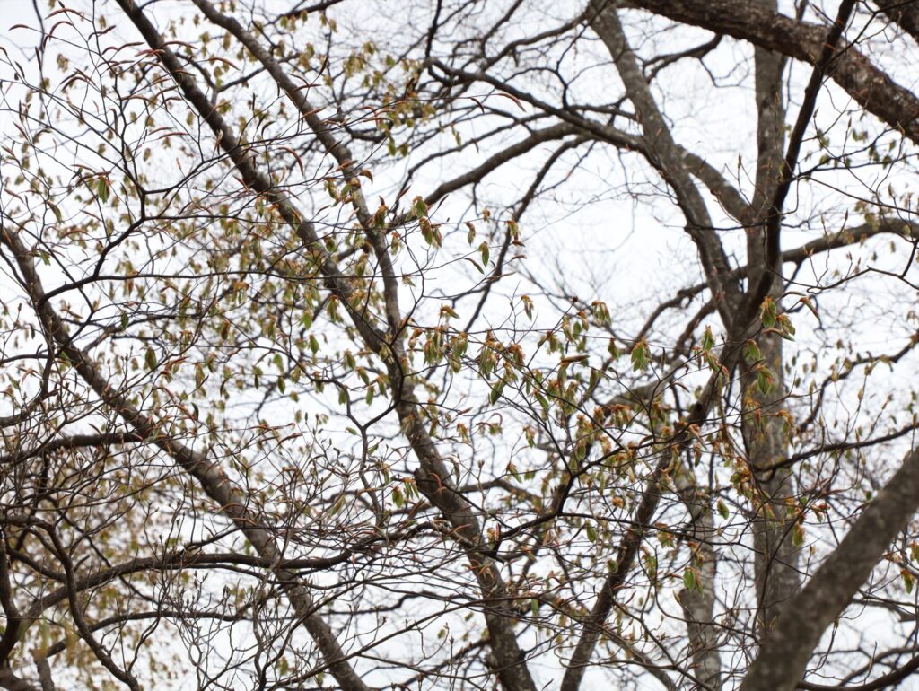 加えて、一足早く木々の芽吹きが始まっていました。(写真はブナ)