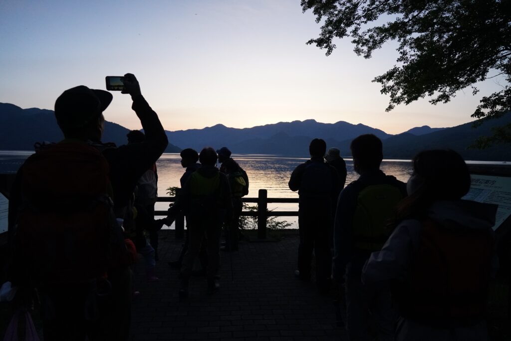 6月17日に「中禅寺湖で夜の生きもの探し!」を開催しました! 今年はちょうど日没が始まる19:00からスタート! 白根山をはじめとする山々のシルエットが幻想的です… 道中では …