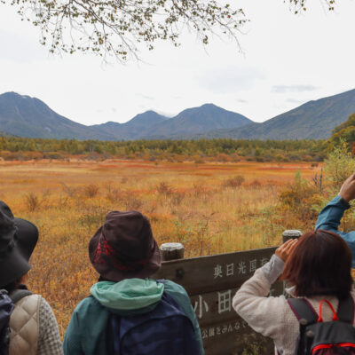 10月9日(日)に小田代原『草紅葉』ガイドウォークを実施しました! 赤沼自然情報センターから低公害バスを利用して小田代原へ向かい西側遊歩道をゆっくりと歩いて行きました。 あいにくの曇り空でした…