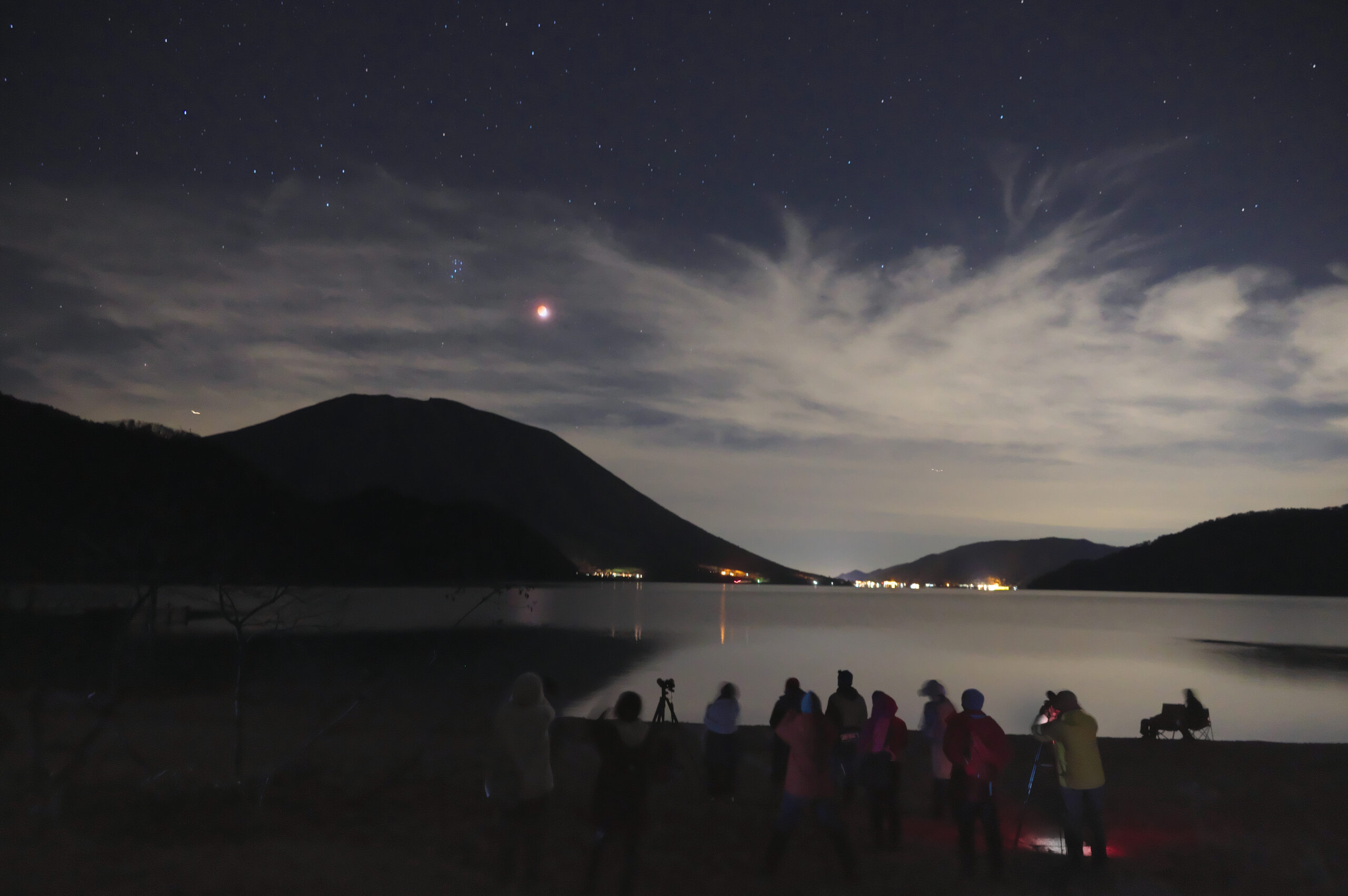 11月19日(金)に、千手ヶ浜で男体山から昇る98%の部分月食を観察する「月食鑑賞ツアー」を開催しました。 男体山の山頂付近から昇る満月が見られるのも珍しいですが、今回は非常に皆既に近い部分月食も見…