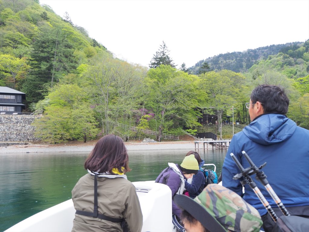 (モーターボートからの景色) 5月20日(日)第2回中禅寺湖南岸トレッキングを実施いたしました。 お天気も良く風も強くなく、ハイキング日和のなか5名様のご参加となりました。 コ…