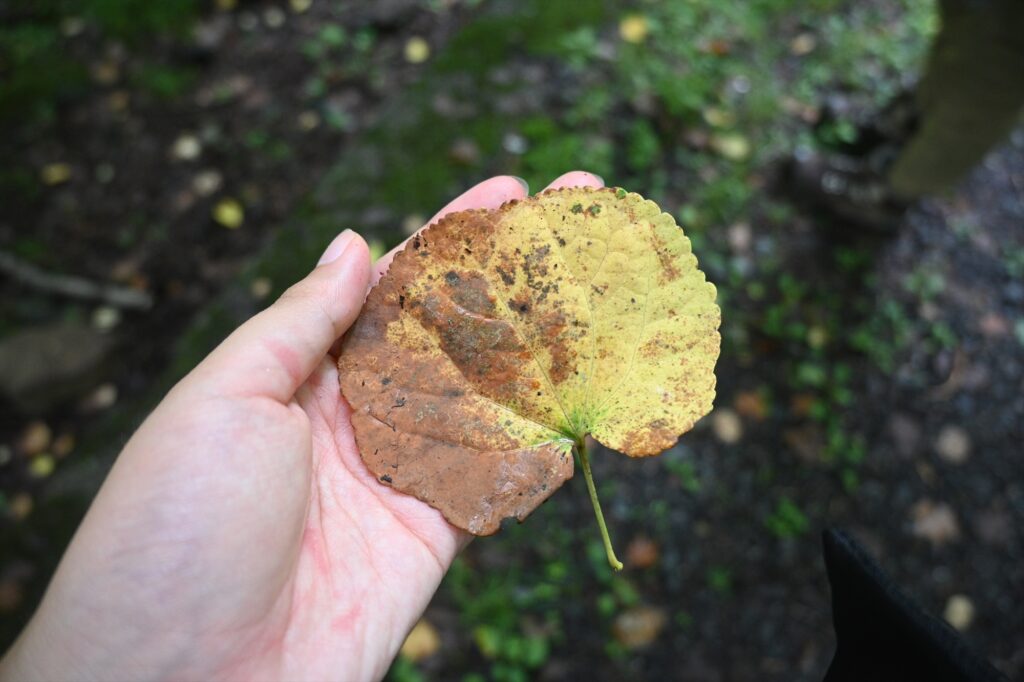 最近の奥日光では雨の日が多く、不安定な日が続いていました☔ たくさん雨が降ったので、今回は西ノ湖の水が増えていることを期待して西ノ湖まで歩いてきました。 歩道には 、このように丸っこい形の葉を…