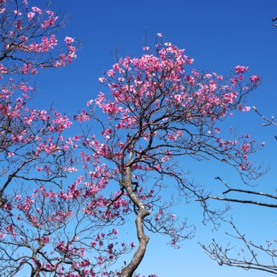 半月山のアカヤシオと千手ヶ浜のオオヤマザクラ