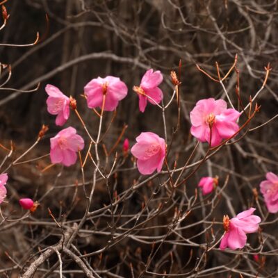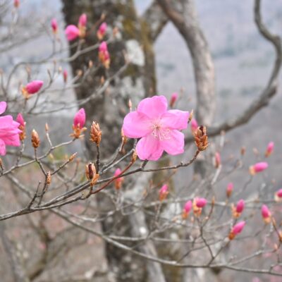 昨日登った鳴虫山 なんと! すでにアカヤシオが咲き始めていました!! このまま進めば、今週末には見ごろになりそう この早さ、例年より2週間近く前倒しでしょうか。 花の数はま…