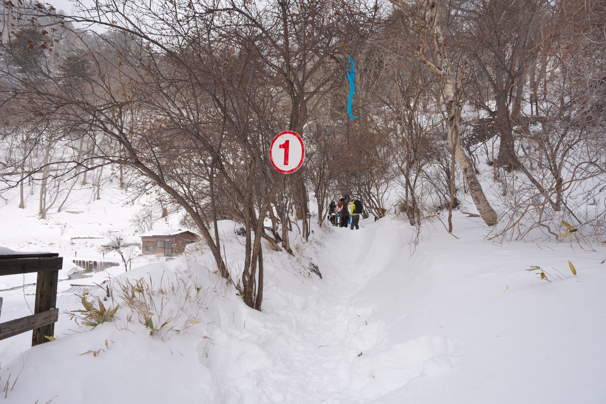今年もスノーシューシーズンがやってきました。 今日は湯元のスノーシューコースの一つ、青色で示される小峠コースを整備。 コースのポイントとなる箇所には数字の看板を設置、コース上には目印と…