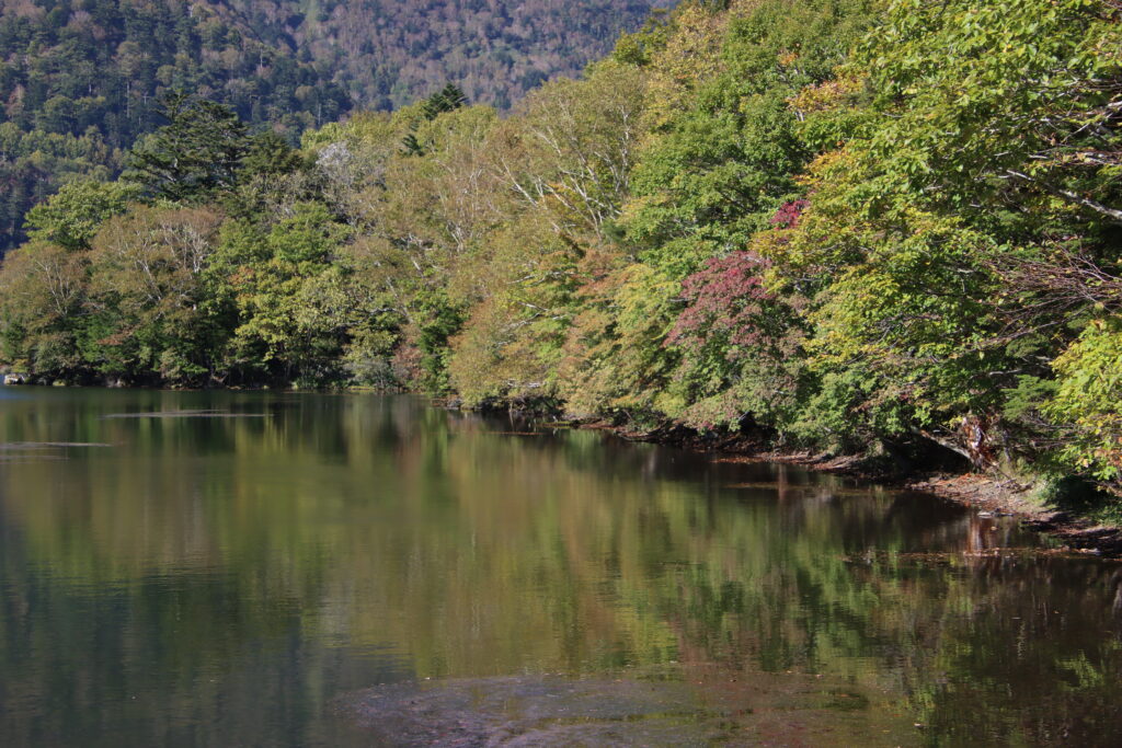 本日は中禅寺湖南岸を歩いてきました。 この時期の中禅寺湖畔といえば紅葉の進み具合が気になります。 南岸は鮮やかな紅葉を楽しめますが、現在の様子はというと… まだまだ緑色がほとんど。(大使…