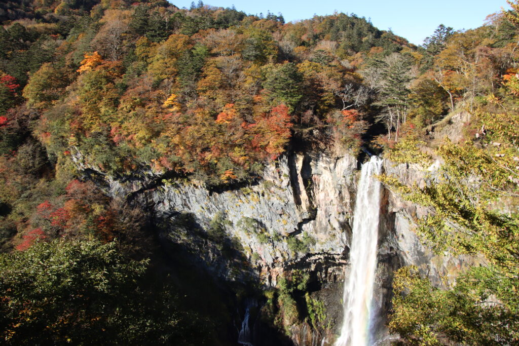 紅葉がどんどん見頃になっていますよ! まずは華厳渓谷。 華厳滝もご覧の通り! 落ち口周辺に生育しているツツジ類が良い色出していますね。 滝だけではなく、明智平方面の斜面にも注目して…